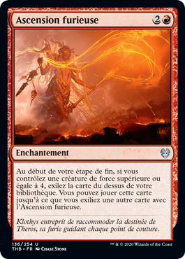 | Rules | At the beginning of your end step, if you control a creature with power 4 or greater, exile the top card of your library. You may play that card until you exile another card with Furious Rise. |