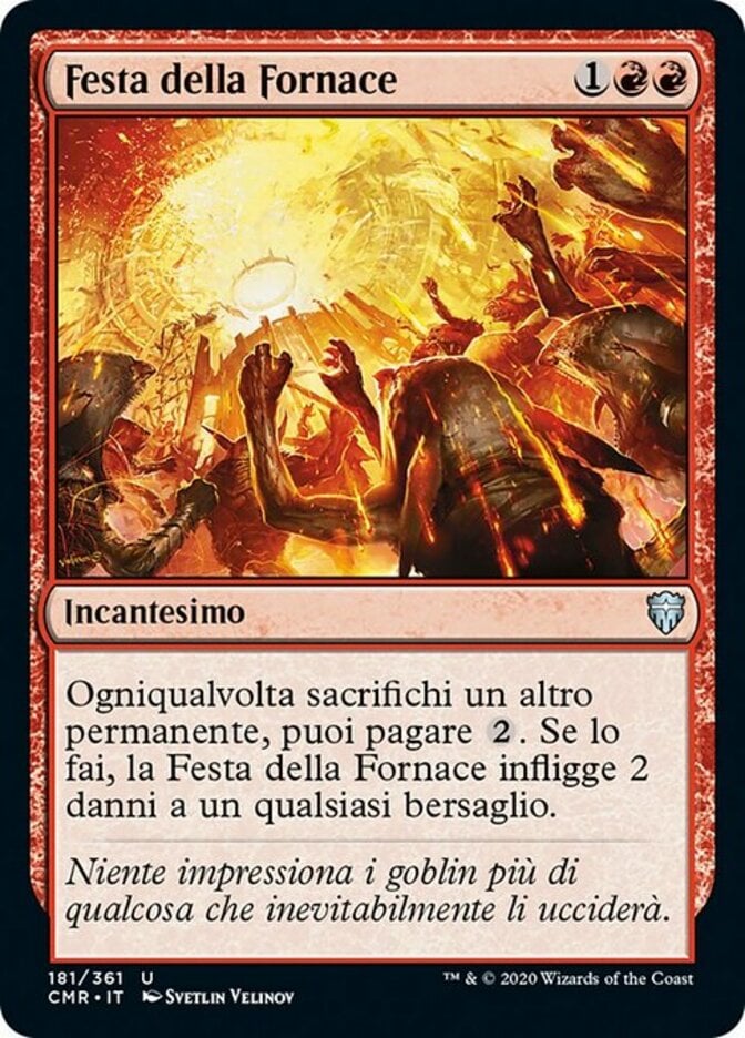 | Rules | Whenever you sacrifice another permanent, you may pay . If you do, Furnace Celebration deals 2 damage to any target. |