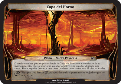 | Rules | When you planeswalk to Furnace Layer or at the beginning of your upkeep, select target player at random. That player discards a card. If that player discards a land card this way, they lose 3 life. Whenever you roll , you may destroy target nonland permanent. |