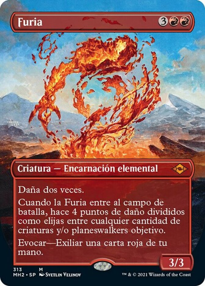 | Rules | Double strike When Fury enters the battlefield, it deals 4 damage divided as you choose among any number of target creatures and/or planeswalkers. Evoke—Exile a red card from your hand. |