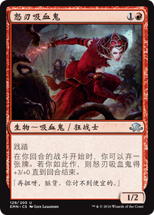 | Rules | Trample At the beginning of combat on your turn, you may discard a card. If you do, Furyblade Vampire gets +3/+0 until end of turn. |