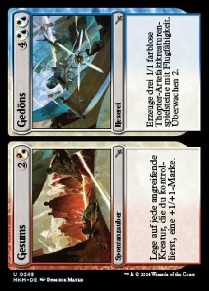 | Rules | Put a +1/+1 counter on each attacking creature you control. // Create three 1/1 colorless Thopter artifact creature tokens with flying. Surveil 2. |