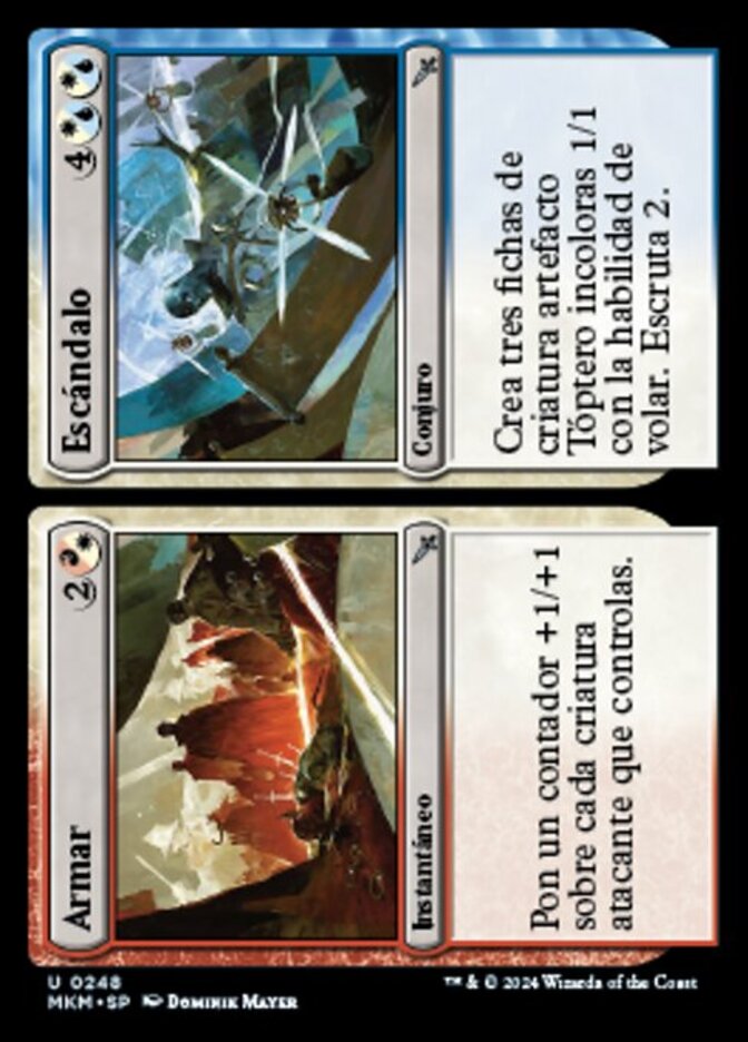 | Rules | Put a +1/+1 counter on each attacking creature you control. // Create three 1/1 colorless Thopter artifact creature tokens with flying. Surveil 2. |