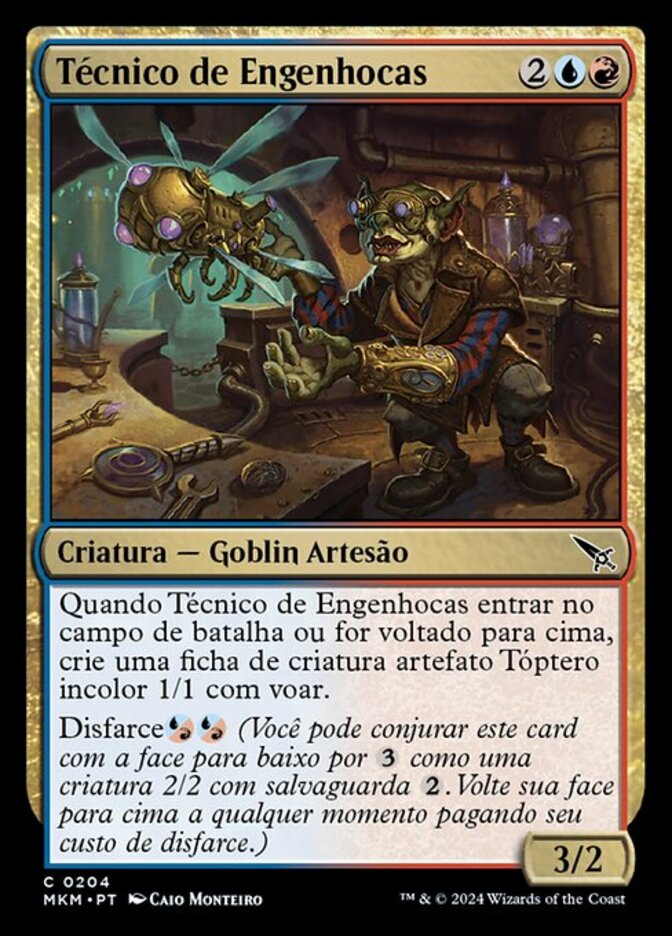 | Rules | When Gadget Technician enters the battlefield or is turned face up, create a 1/1 colorless Thopter artifact creature token with flying. Disguise (You may cast this card face down for as a 2/2 creature with ward . Turn it face up any time for its disguise cost.) |