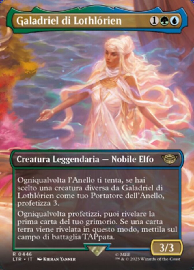 | Rules | Whenever the Ring tempts you, if you chose a creature other than Galadriel of Lothlórien as your Ring-bearer, scry 3. Whenever you scry, you may reveal the top card of your library. If a land card is revealed this way, put it onto the battlefield tapped. |