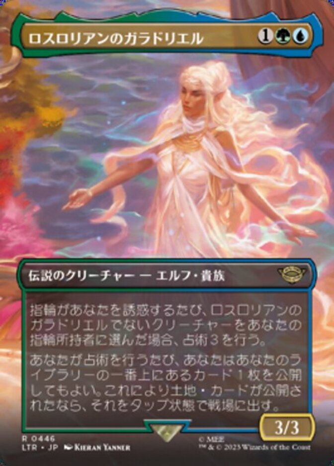 | Rules | Whenever the Ring tempts you, if you chose a creature other than Galadriel of Lothlórien as your Ring-bearer, scry 3. Whenever you scry, you may reveal the top card of your library. If a land card is revealed this way, put it onto the battlefield tapped. |