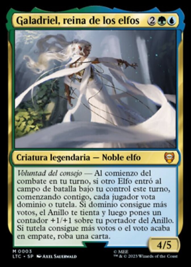 | Rules | Will of the council — At the beginning of combat on your turn, if another Elf entered the battlefield under your control this turn, starting with you, each player votes for dominion or guidance. If dominion gets more votes, the Ring tempts you, then you put a +1/+1 counter on your Ring-bearer. If guidance gets more votes or the vote is tied, draw a card. |