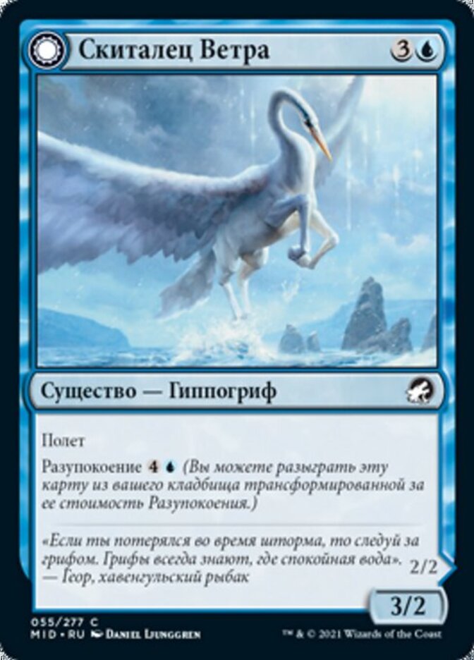| Rules | Flying Disturb (You may cast this card from your graveyard transformed for its disturb cost.) // Flying If Waildrifter would be put into a graveyard from anywhere, exile it instead. |