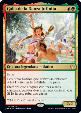 Whenever you attack with three or more creatures, you may discard a card at random. If you do, draw two cards.