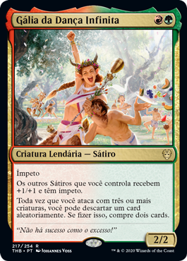 Whenever you attack with three or more creatures, you may discard a card at random. If you do, draw two cards.