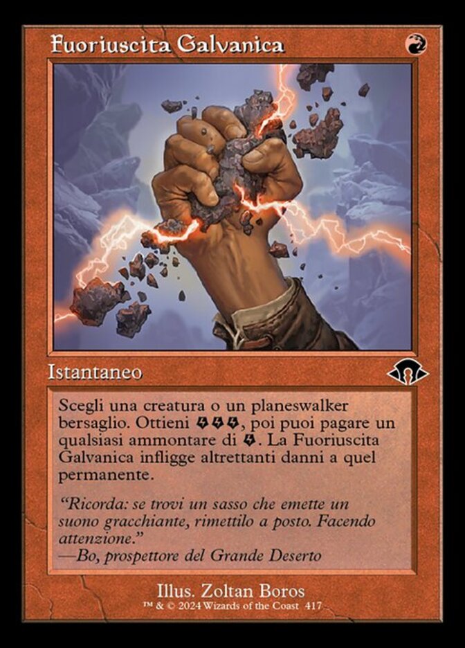 | Rules | Choose target creature or planeswalker. You get (three energy counters), then you may pay any amount of . Galvanic Discharge deals that much damage to that permanent. |