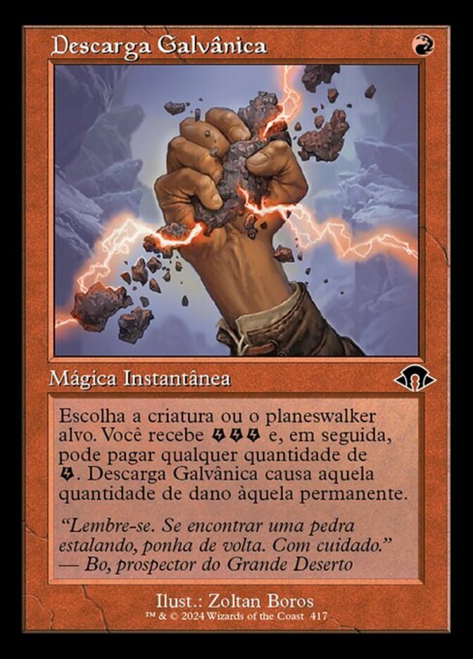 | Rules | Choose target creature or planeswalker. You get (three energy counters), then you may pay any amount of . Galvanic Discharge deals that much damage to that permanent. |