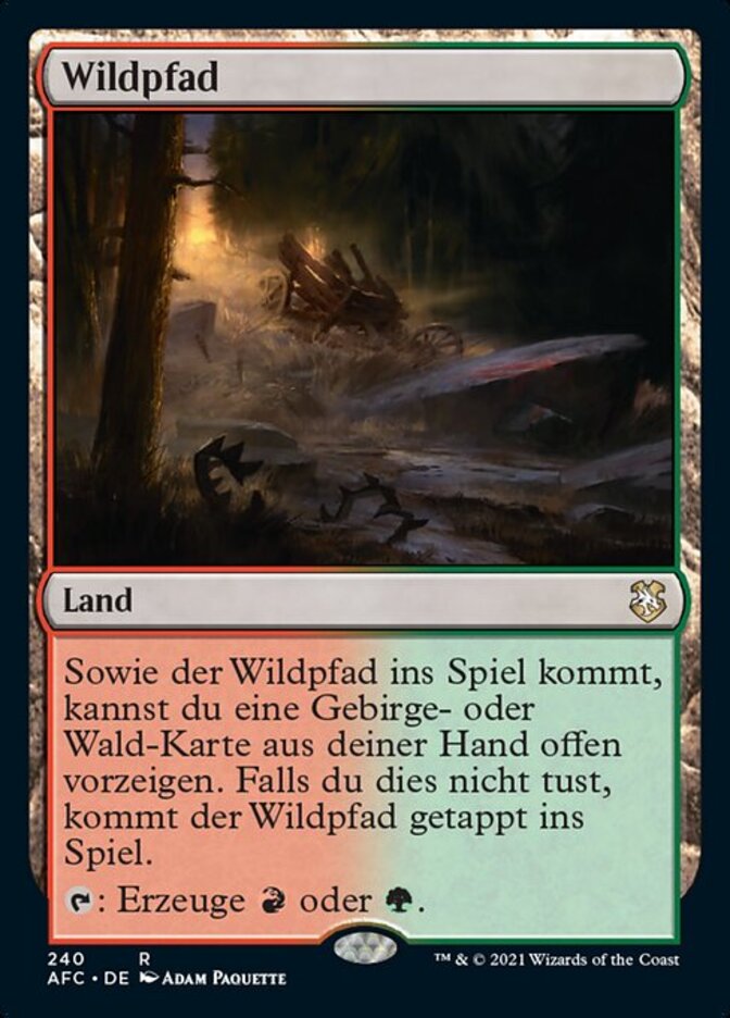 | Rules | As Game Trail enters the battlefield, you may reveal a Mountain or Forest card from your hand. If you don't, Game Trail enters the battlefield tapped. : Add or . |