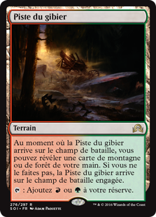 | Rules | As Game Trail enters the battlefield, you may reveal a Mountain or Forest card from your hand. If you don't, Game Trail enters the battlefield tapped. : Add or . |