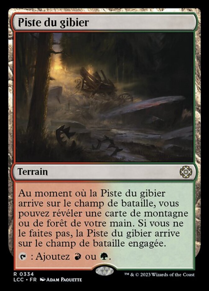 | Rules | As Game Trail enters the battlefield, you may reveal a Mountain or Forest card from your hand. If you don't, Game Trail enters the battlefield tapped. : Add or . |