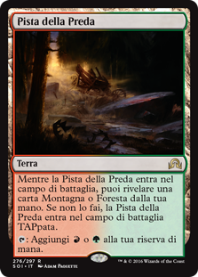 | Rules | As Game Trail enters the battlefield, you may reveal a Mountain or Forest card from your hand. If you don't, Game Trail enters the battlefield tapped. : Add or . |