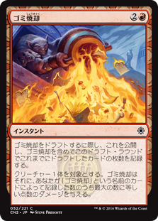 | Rules | Reveal Garbage Fire as you draft it and note how many cards you've drafted this draft round, including Garbage Fire. Garbage Fire deals damage to target creature equal to the highest number you noted for cards named Garbage Fire. |