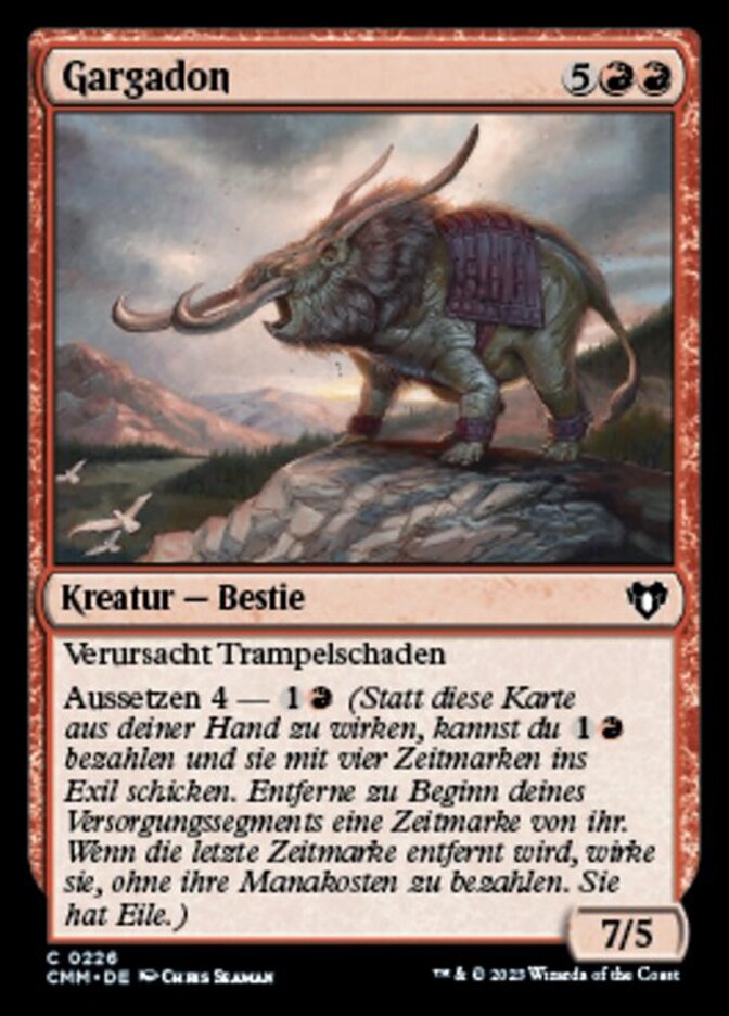 | Rules | Trample Suspend 4— (Rather than cast this card from your hand, you may pay and exile it with four time counters on it. At the beginning of your upkeep, remove a time counter. When the last is removed, cast it without paying its mana cost. It has haste.) |