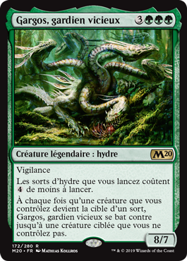 | Rules | Vigilance Hydra spells you cast cost less to cast. Whenever a creature you control becomes the target of a spell, Gargos, Vicious Watcher fights up to one target creature you don't control. |