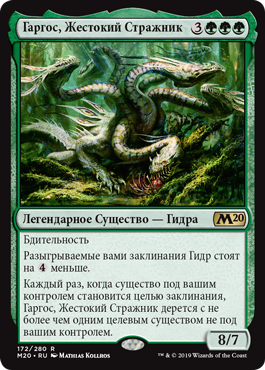 | Rules | Vigilance Hydra spells you cast cost less to cast. Whenever a creature you control becomes the target of a spell, Gargos, Vicious Watcher fights up to one target creature you don't control. |