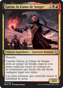 | Rules | Flash When Garna, the Bloodflame enters the battlefield, return to your hand all creature cards in your graveyard that were put there from anywhere this turn. Other creatures you control have haste. |