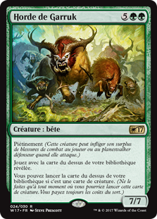 | Rules | Trample Play with the top card of your library revealed. You may cast creature spells from the top of your library. (Do this only any time you could cast that creature spell. You still pay the spell's costs.) |