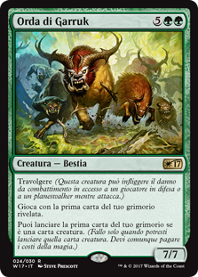 | Rules | Trample Play with the top card of your library revealed. You may cast creature spells from the top of your library. (Do this only any time you could cast that creature spell. You still pay the spell's costs.) |