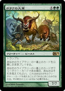 | Rules | Trample Play with the top card of your library revealed. You may cast creature spells from the top of your library. (Do this only any time you could cast that creature spell. You still pay the spell's costs.) |
