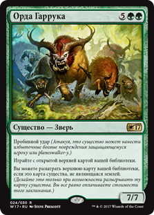| Rules | Trample Play with the top card of your library revealed. You may cast creature spells from the top of your library. (Do this only any time you could cast that creature spell. You still pay the spell's costs.) |