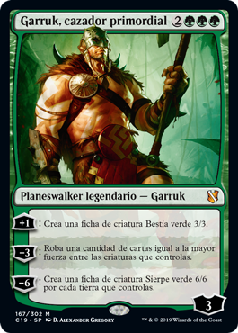 | Rules | +1: Create a 3/3 green Beast creature token. −3: Draw cards equal to the greatest power among creatures you control. −6: Create a 6/6 green Wurm creature token for each land you control. |