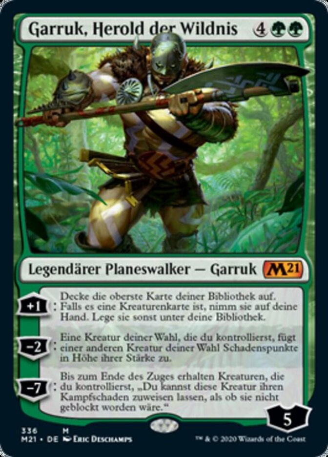 | Rules | +1: Reveal the top card of your library. If it's a creature card, put it into your hand. Otherwise, put it on the bottom of your library. −2: Target creature you control deals damage equal to its power to another target creature. −7: Until end of turn, creatures you control gain "You may have this creature assign its combat damage as though it weren't blocked." |