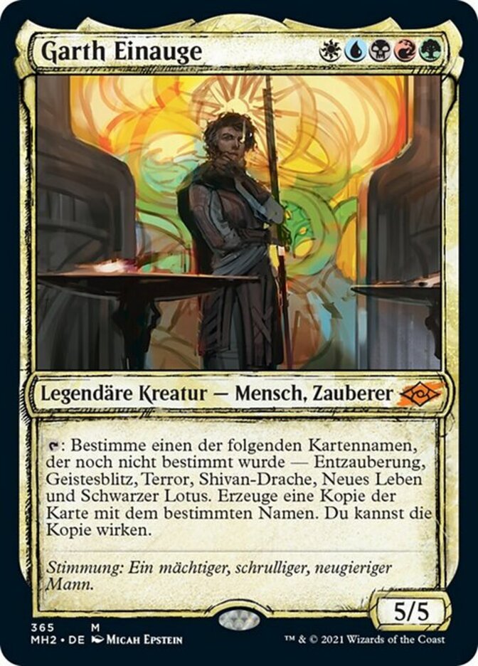 | Rules | : Choose a card name that hasn't been chosen from among Disenchant, Braingeyser, Terror, Shivan Dragon, Regrowth, and Black Lotus. Create a copy of the card with the chosen name. You may cast the copy. (You still pay its costs.) |