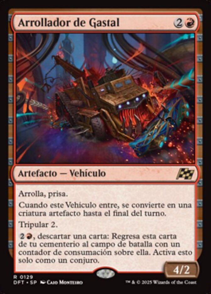 | Rules | Trample, haste When this Vehicle enters, it becomes an artifact creature until end of turn. Crew 2 , Discard a card: Return this card from your graveyard to the battlefield with a finality counter on it. Activate only as a sorcery. |