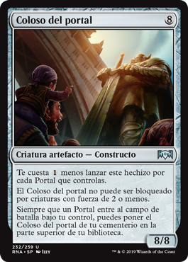 | Rules | This spell costs less to cast for each Gate you control. Gate Colossus can't be blocked by creatures with power 2 or less. Whenever a Gate enters the battlefield under your control, you may put Gate Colossus from your graveyard on top of your library. |