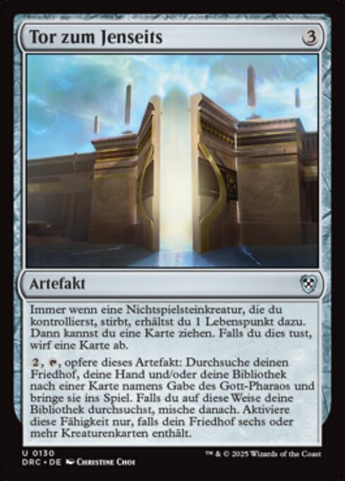, , Sacrifice Gate to the Afterlife: Search your graveyard, hand, and/or library for a card named God-Pharaoh's Gift and put it onto the battlefield. If you search your library this way, shuffle. Activate only if there are six or more creature cards in your graveyard.
