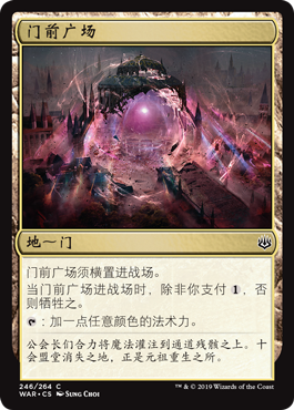 | Rules | Gateway Plaza enters the battlefield tapped. When Gateway Plaza enters the battlefield, sacrifice it unless you pay . : Add one mana of any color. |
