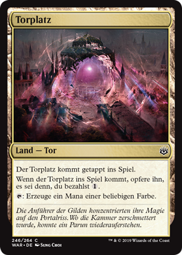 | Rules | Gateway Plaza enters the battlefield tapped. When Gateway Plaza enters the battlefield, sacrifice it unless you pay . : Add one mana of any color. |