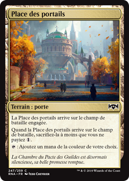 | Rules | Gateway Plaza enters the battlefield tapped. When Gateway Plaza enters the battlefield, sacrifice it unless you pay . : Add one mana of any color. |