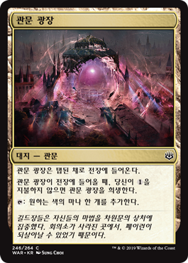 | Rules | Gateway Plaza enters the battlefield tapped. When Gateway Plaza enters the battlefield, sacrifice it unless you pay . : Add one mana of any color. |