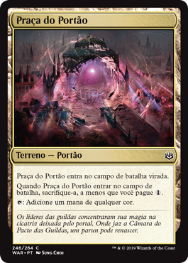 | Rules | Gateway Plaza enters the battlefield tapped. When Gateway Plaza enters the battlefield, sacrifice it unless you pay . : Add one mana of any color. |