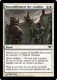 | Rules | Create two 1/1 white Human creature tokens. Fateful hour — If you have 5 or less life, create five of those tokens instead. |