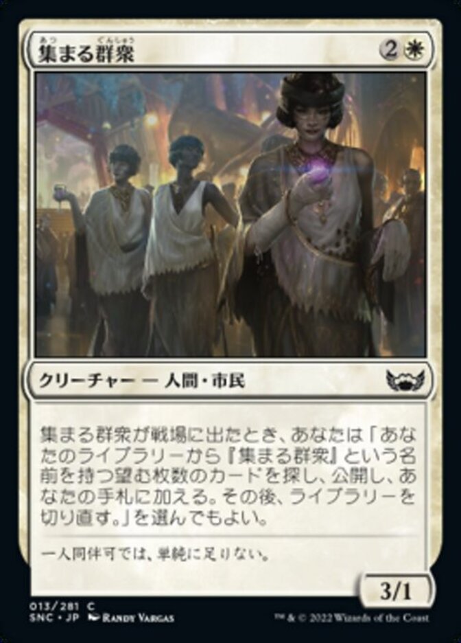 | Rules | When Gathering Throng enters the battlefield, you may search your library for any number of cards named Gathering Throng, reveal them, put them into your hand, then shuffle. |