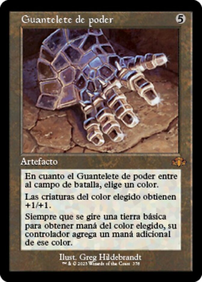 | Rules | As Gauntlet of Power enters the battlefield, choose a color. Creatures of the chosen color get +1/+1. Whenever a basic land is tapped for mana of the chosen color, its controller adds an additional one mana of that color. |