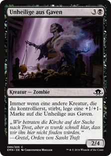 | Rules | Whenever another creature you control dies, put a +1/+1 counter on Gavony Unhallowed. |