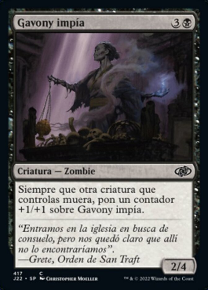 | Rules | Whenever another creature you control dies, put a +1/+1 counter on Gavony Unhallowed. |