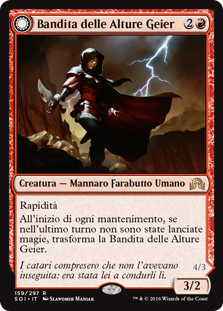 | Rules | Haste At the beginning of each upkeep, if no spells were cast last turn, transform Geier Reach Bandit. // Whenever a Werewolf enters the battlefield under your control, you may transform it. At the beginning of each upkeep, if a player cast two or more spells last turn, transform Vildin-Pack Alpha. |