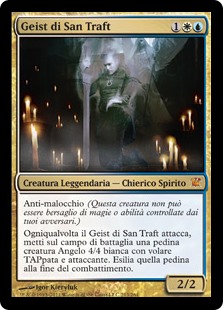 | Rules | Hexproof (This creature can't be the target of spells or abilities your opponents control.) Whenever Geist of Saint Traft attacks, create a 4/4 white Angel creature token with flying that's tapped and attacking. Exile that token at end of combat. |