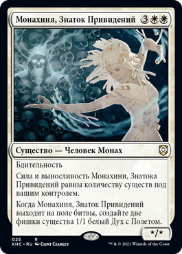 | Rules | Vigilance Geist-Honored Monk's power and toughness are each equal to the number of creatures you control. When Geist-Honored Monk enters the battlefield, create two 1/1 white Spirit creature tokens with flying. |
