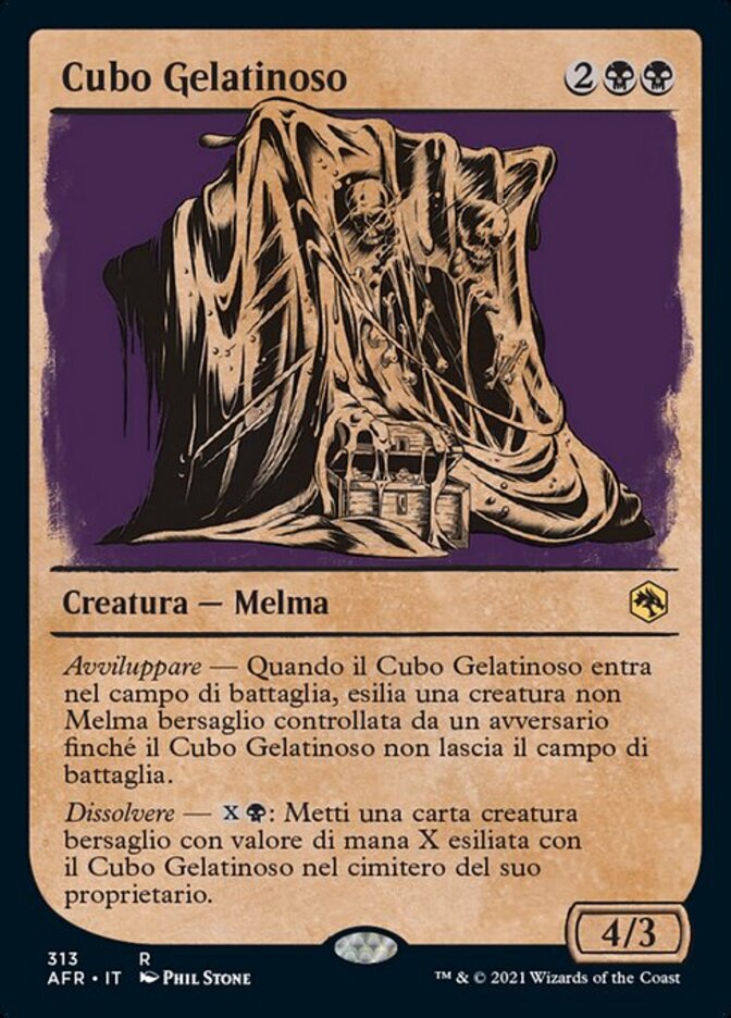 | Rules | Engulf — When Gelatinous Cube enters the battlefield, exile target non-Ooze creature an opponent controls until Gelatinous Cube leaves the battlefield. Dissolve — : Put target creature card with mana value X exiled with Gelatinous Cube into its owner's graveyard. |