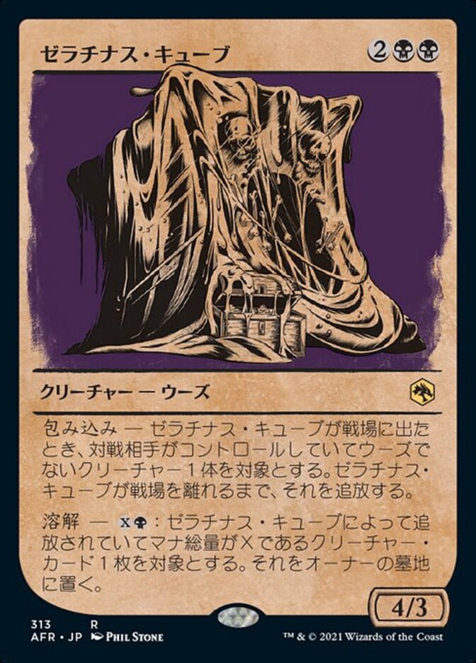 | Rules | Engulf — When Gelatinous Cube enters the battlefield, exile target non-Ooze creature an opponent controls until Gelatinous Cube leaves the battlefield. Dissolve — : Put target creature card with mana value X exiled with Gelatinous Cube into its owner's graveyard. |